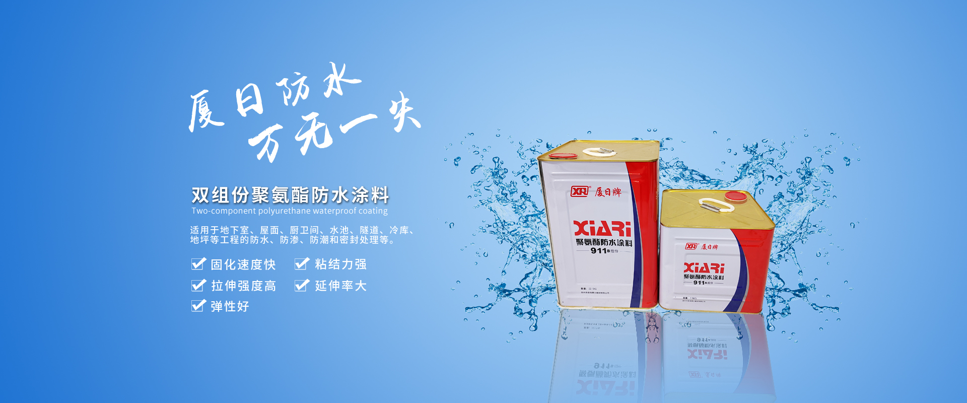 1992年廈日防水創(chuàng)立于泉州市惠安縣,二十多年來(lái)始終專(zhuān)注于防水事業(yè),在中國(guó)建筑防水行業(yè)樹(shù)立了“廈日牌”防水材料,擁有生產(chǎn)加工、銷(xiāo)售貿(mào)易、施工服務(wù)的完整體系,并提供系統(tǒng)解決方案。現(xiàn)擁有全資子公司:廈門(mén)市廈日工貿(mào)有限公司、廈門(mén)市廈日防水工程有限公司、泉州市泉港廈日建材有限公司,并在福建、廣東、浙江、四川、重慶、湖南、湖北、貴州、江西等省份覆蓋經(jīng)銷(xiāo)和服務(wù)網(wǎng)絡(luò)。
